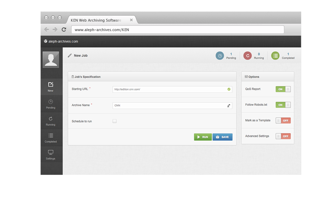 Thanks to its intuitive and easy to use web interface KEN™ is the first multi-platform fully automated web crawler to enable web archiving on a personal level